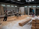 We completed closing in the Community building by covering the main doors with an industrial grade of wire mesh. We also built the back door from cypress, the best, and most stable local wood. We almost have a completely outfitted and functioning cabinet shop.