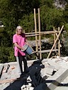 Work continued on the roof truss support girders, plumbing and electrical continued. We lifted the first exterior girder wall into position.